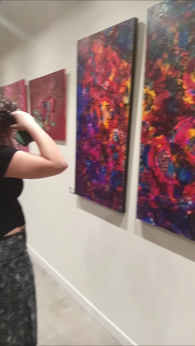 Experience the full vision of the artist’s work as it was presented in an open-air setting. Each panel reflects her exploration of form, texture, and meaning, bringing art into public space.